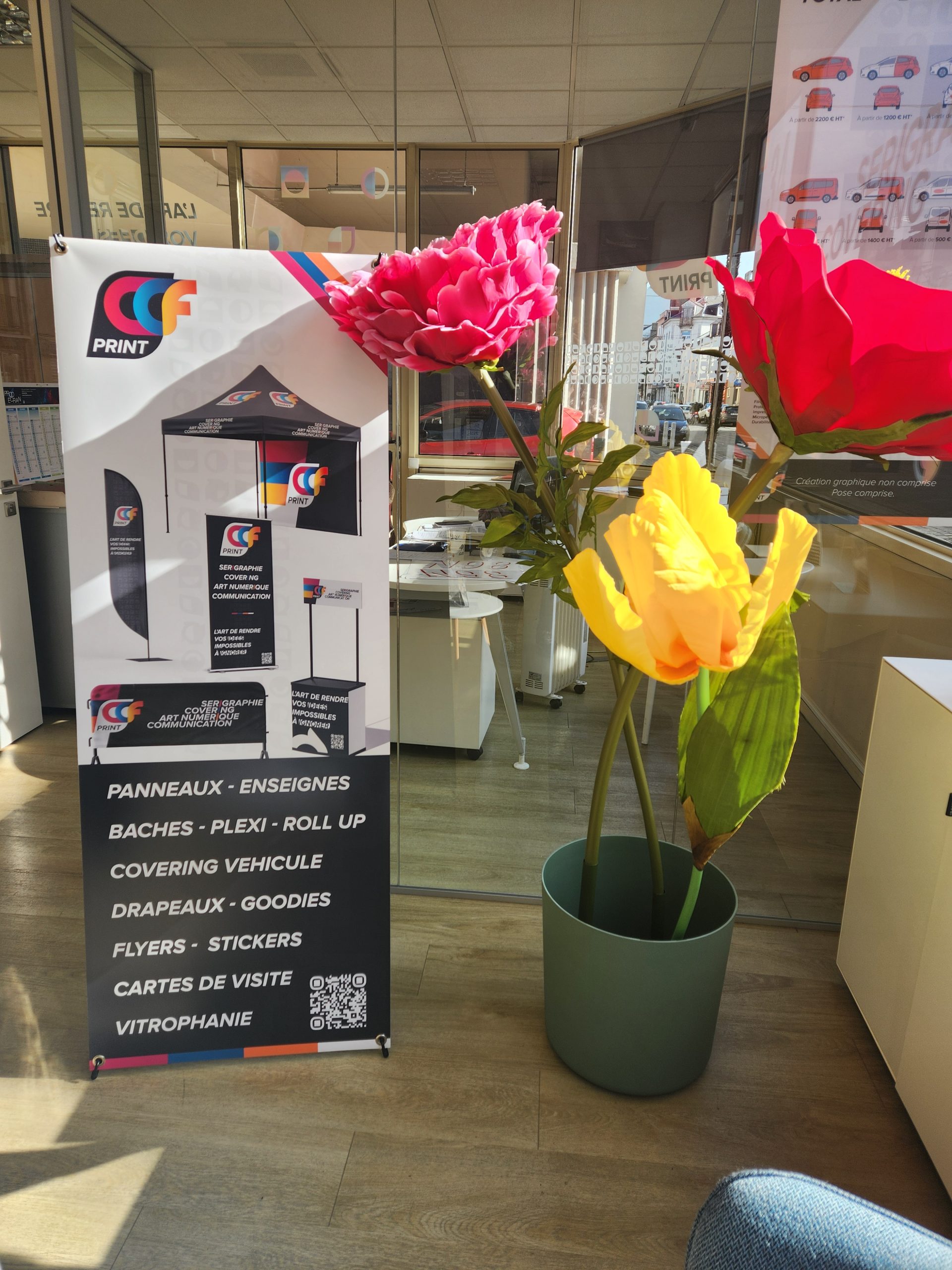 Nous concevons vos visuels, préparons vos fichiers et suivons leur fabrication pour garantir une communication efficace, cohérente et adaptée à votre image.